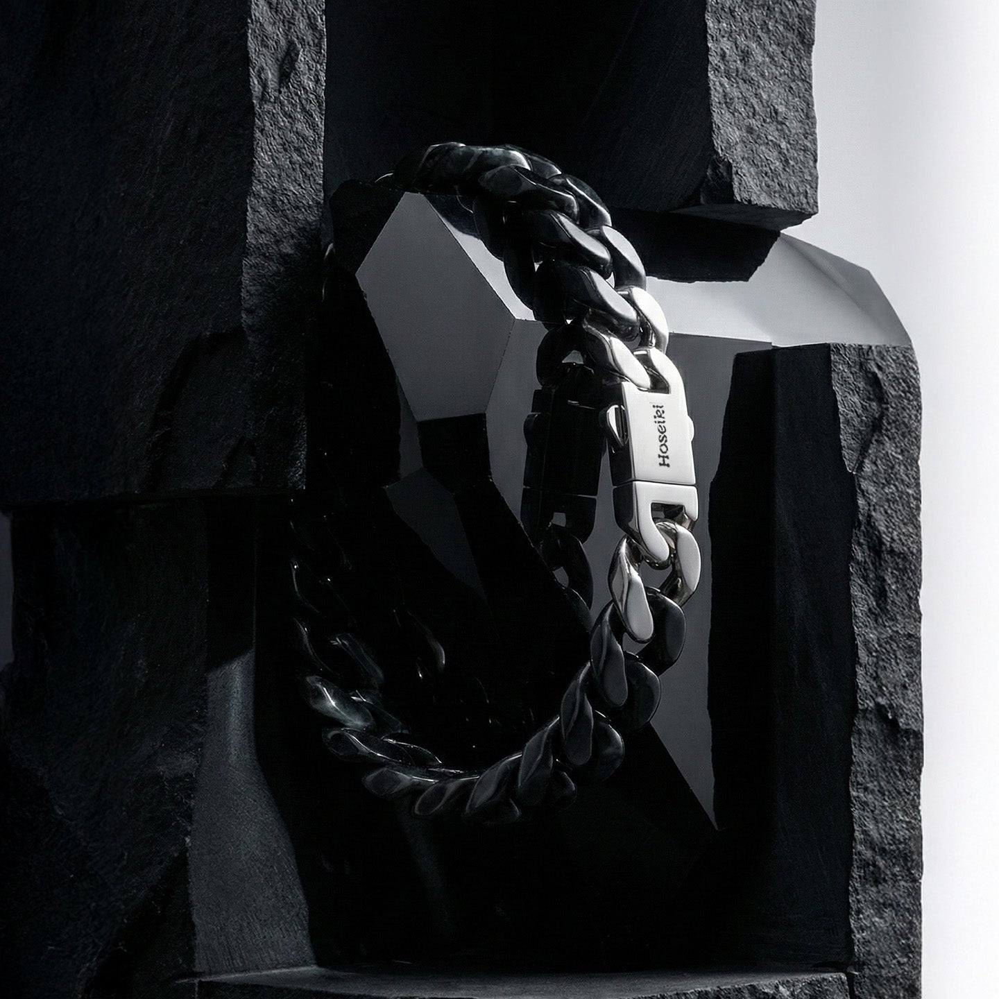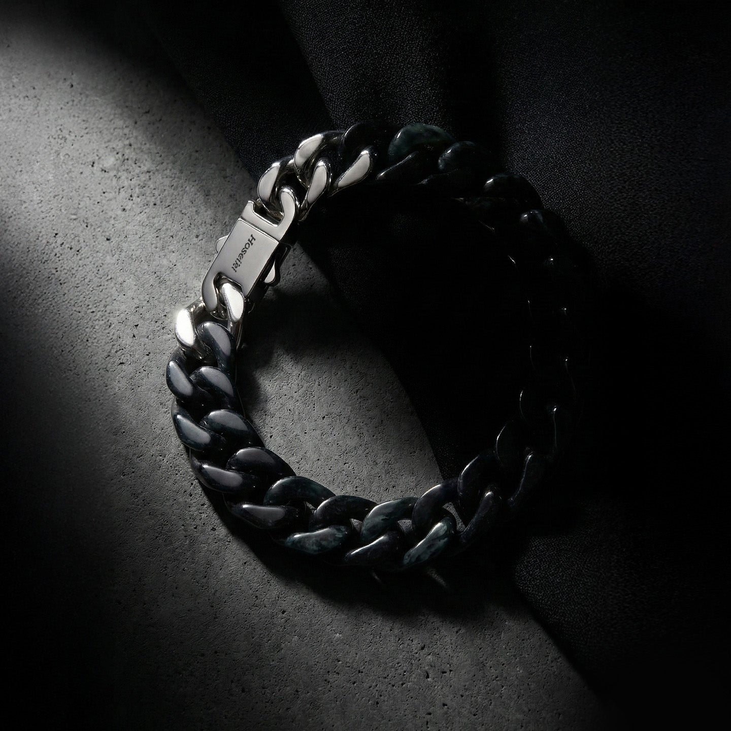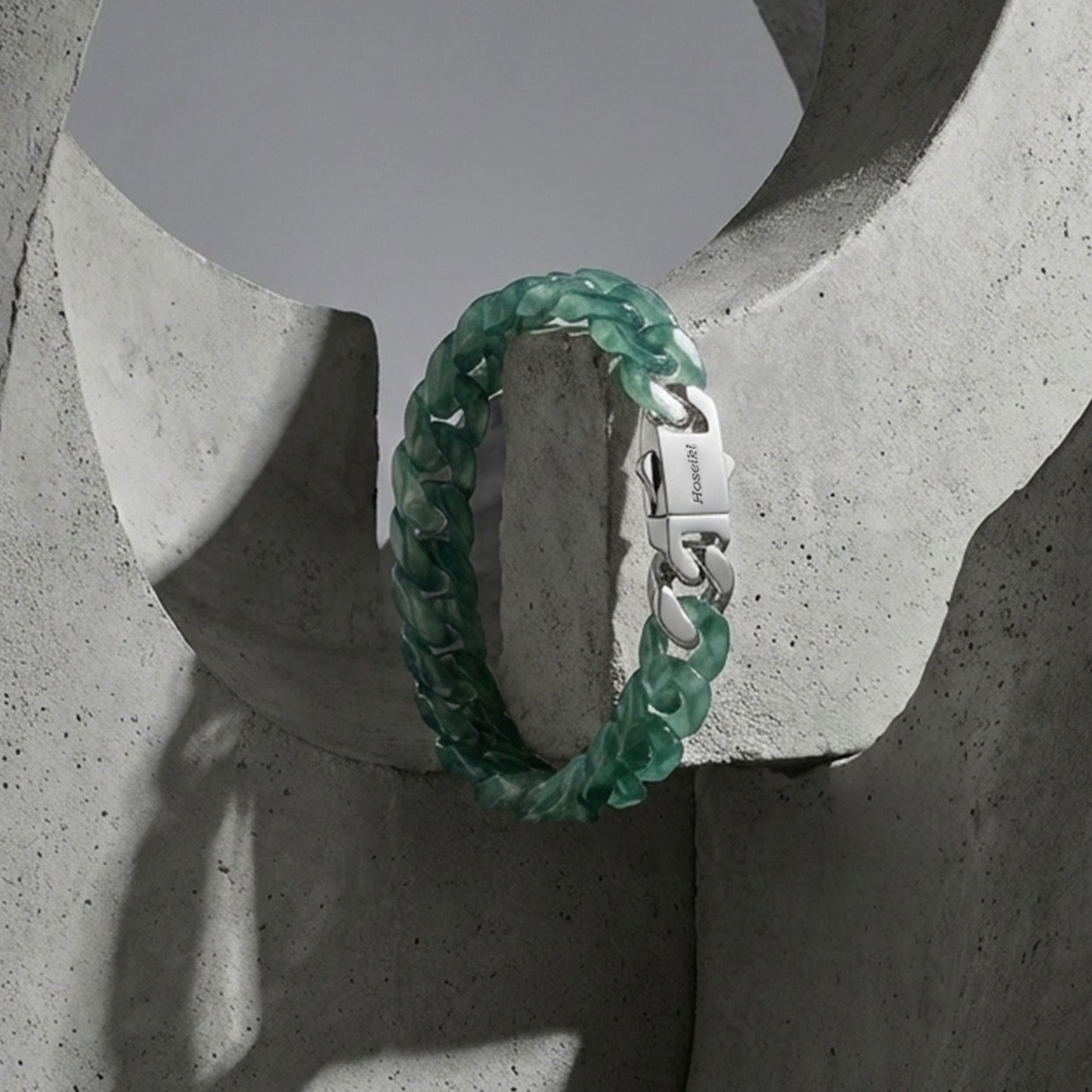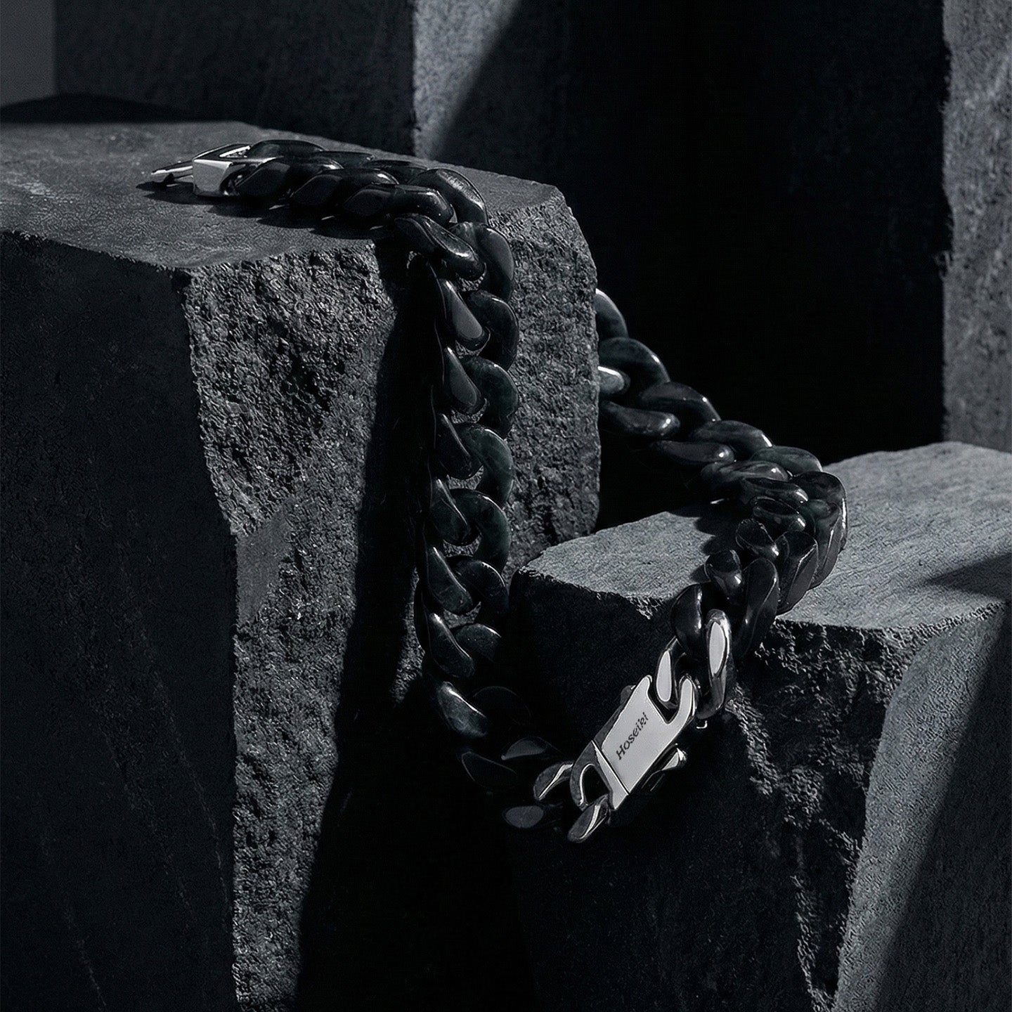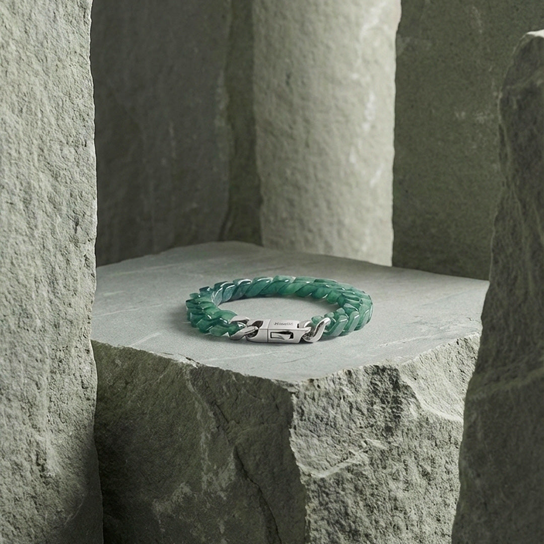 The Cuban structure brings weight, structure, and restraint. Combined with jade’s stabilising energy, it creates a bracelet that feels grounded, composed, and unmistakably deliberate.