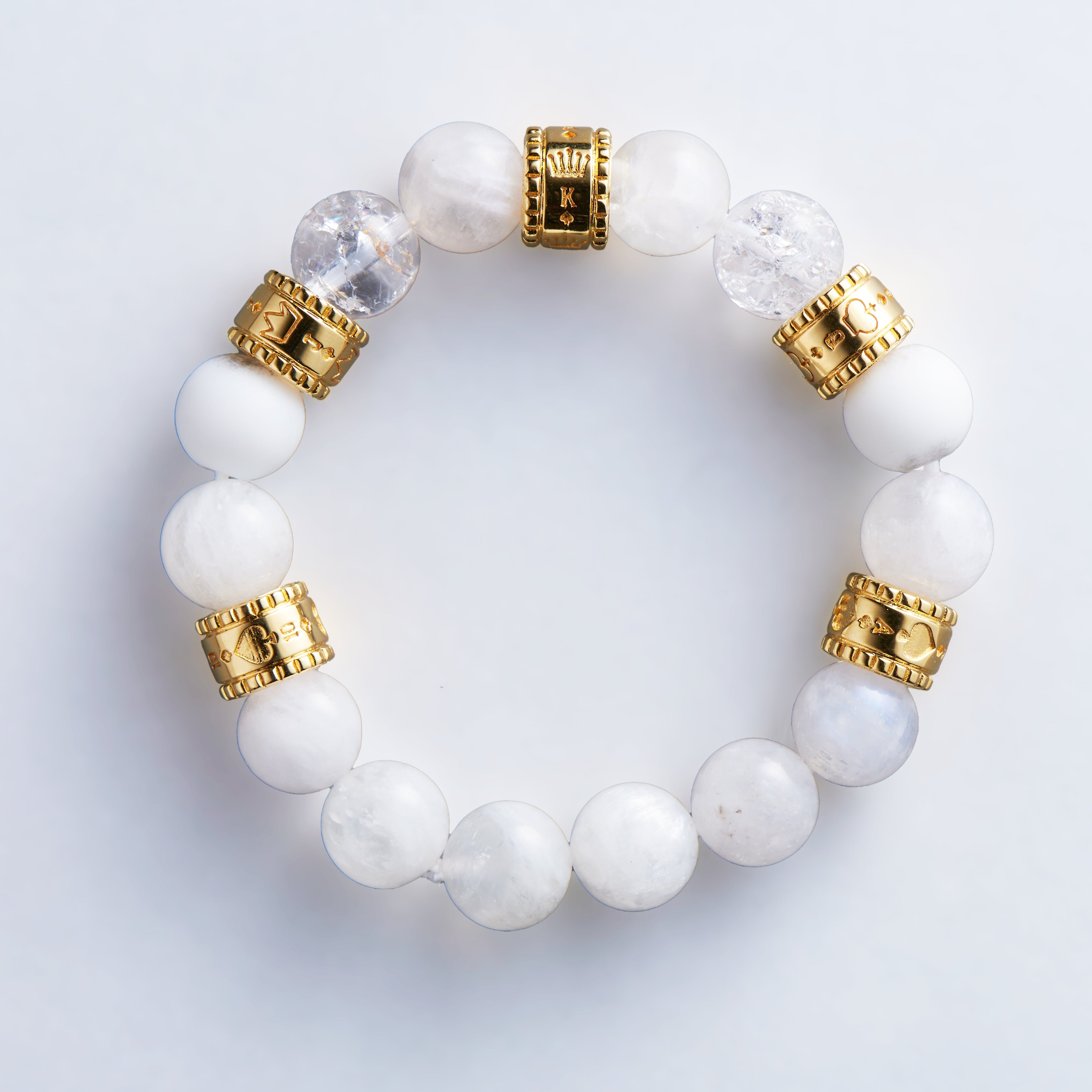 Where celestial clarity meets royal destiny, The Royal Purity bracelet embodies the pristine power of a winning hand. Like freshly fallen snow that blankets the world in possibility, this combination of pure white stones creates an aura of unstoppable fortune.