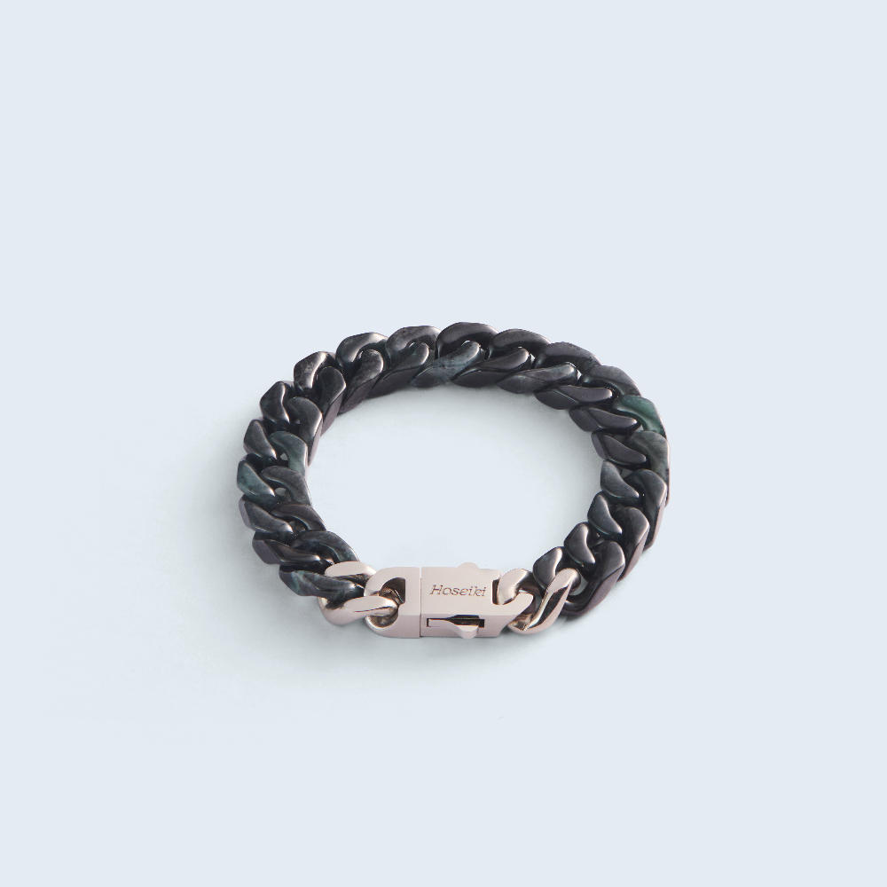 The Cuban structure brings weight, structure, and restraint. Combined with jade’s stabilising energy, it creates a bracelet that feels grounded, composed, and unmistakably deliberate.