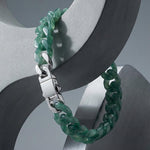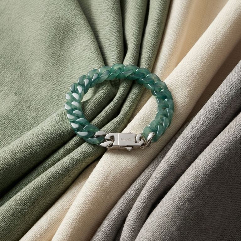 The Cuban structure brings weight, structure, and restraint. Combined with jade’s stabilising energy, it creates a bracelet that feels grounded, composed, and unmistakably deliberate.